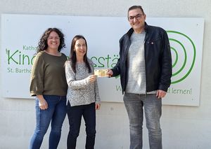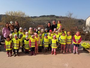 Große Freude herrschte in der Kindertagesstätte in Hilders: Jeanette Risch und Friedhelm Spiegel aus Hilders spendeten insgesamt 50 Warnwesten für die…
