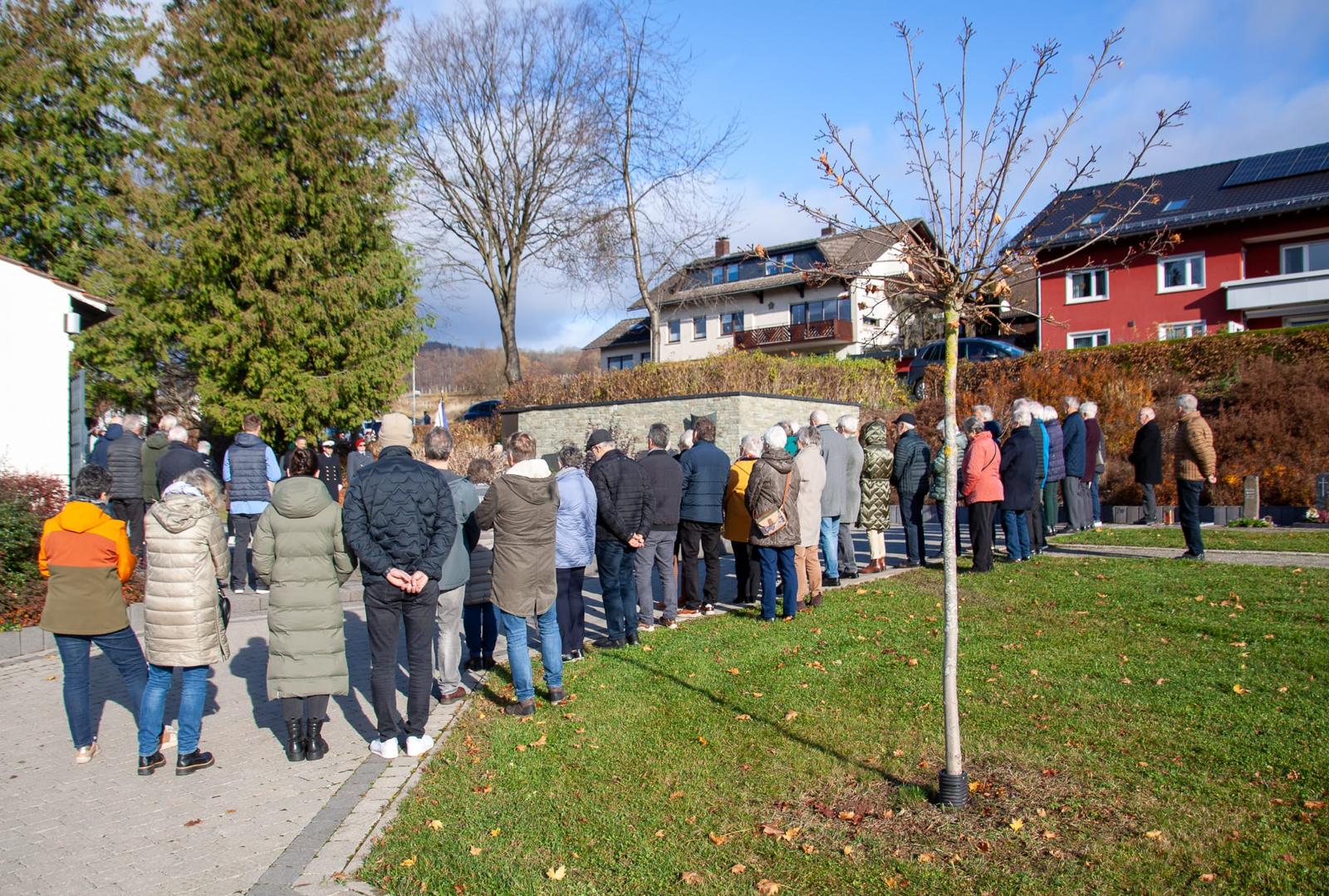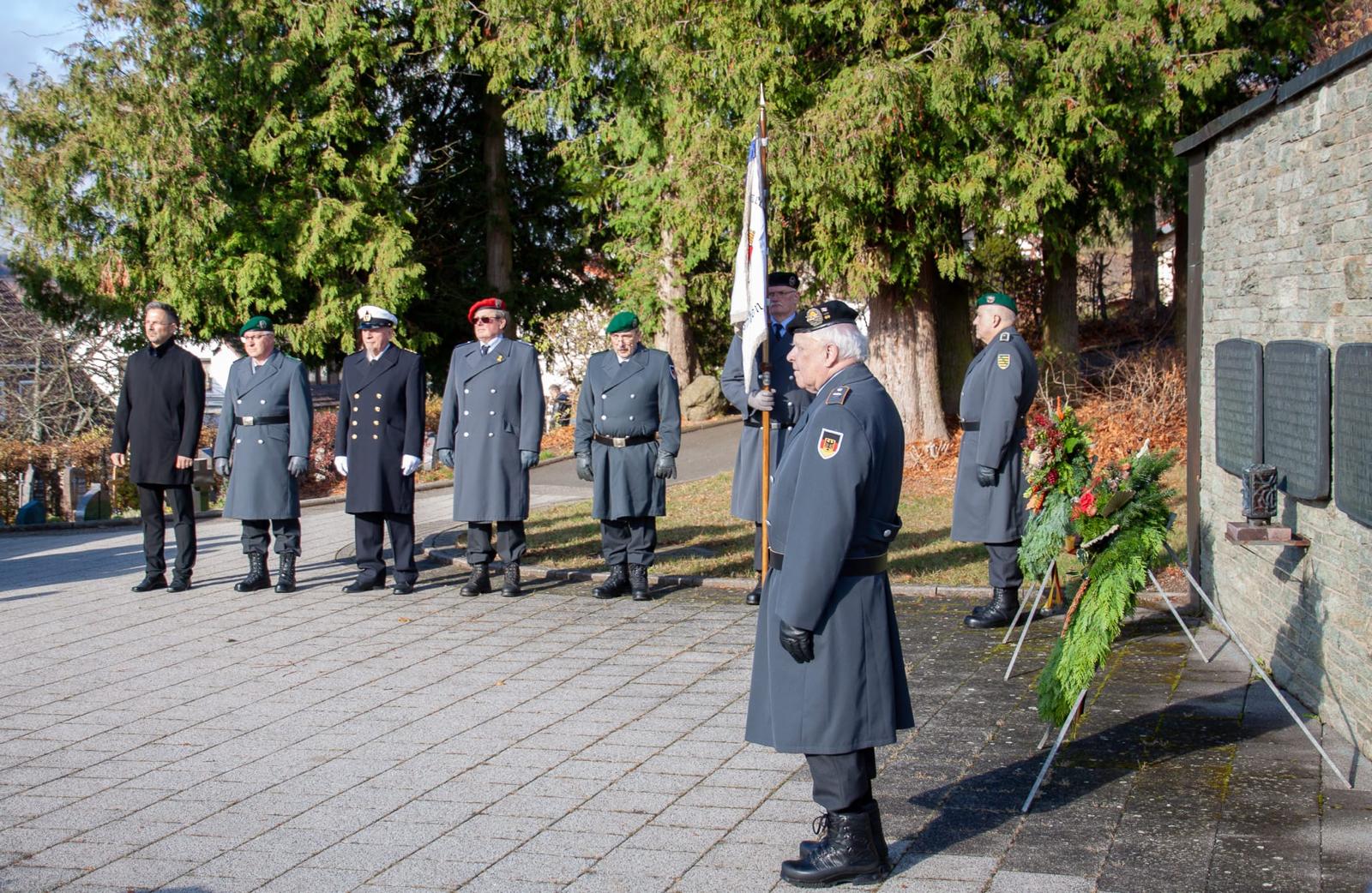 In Hilders gedachten die Reservisten Kameradschaft Hilders und Bürgermeister Ronny Günkel der Millionen von Menschen, die durch weltweite Kriege und Konflikte ihr Leben verloren haben oder Opfer von Gewalt und Tyrannei wurden und werden. Als Symbol des Gedenkens wurden Kränze an der Gedenkstätte auf dem Hilderser Friedhof niedergelegt.