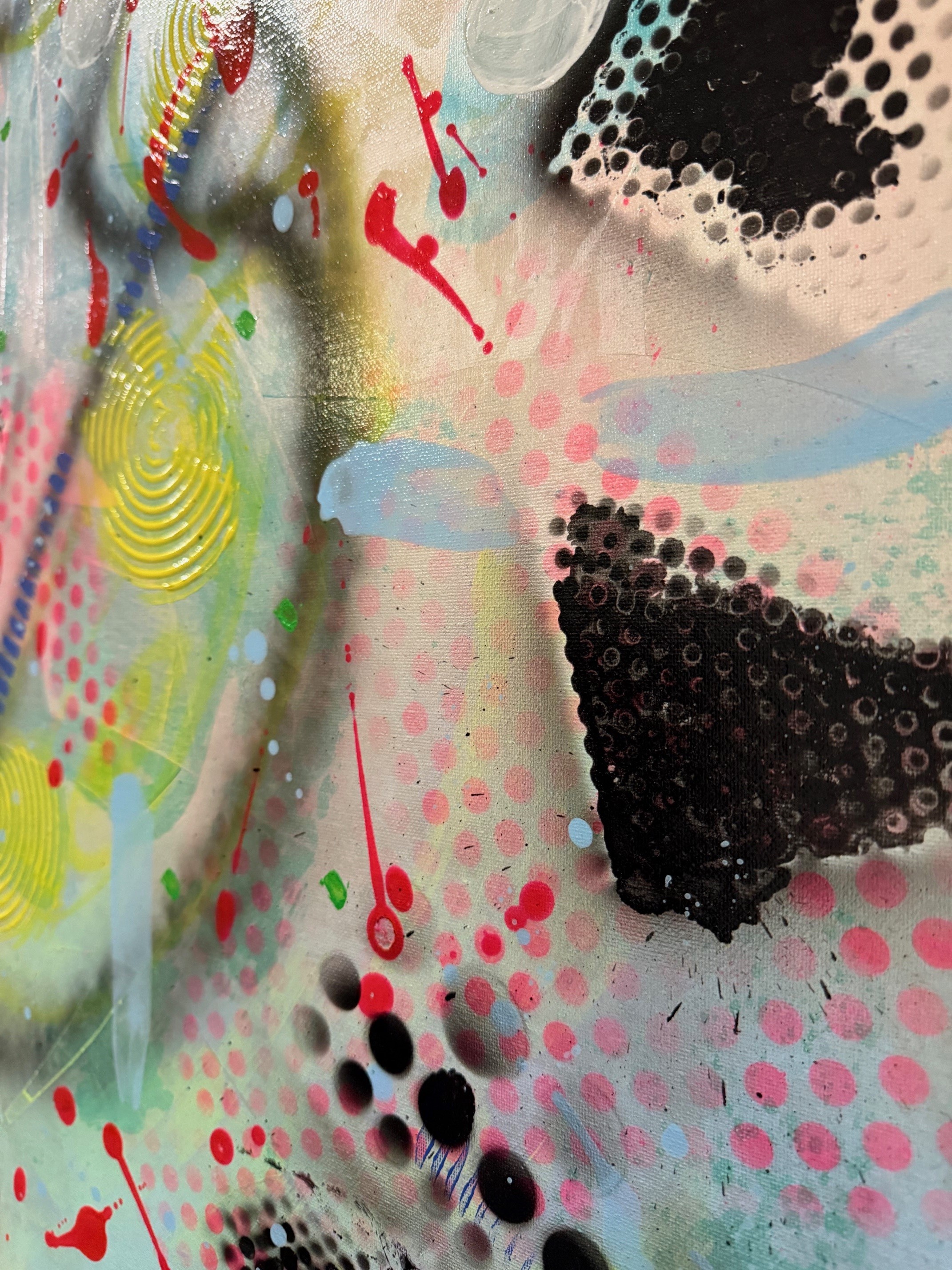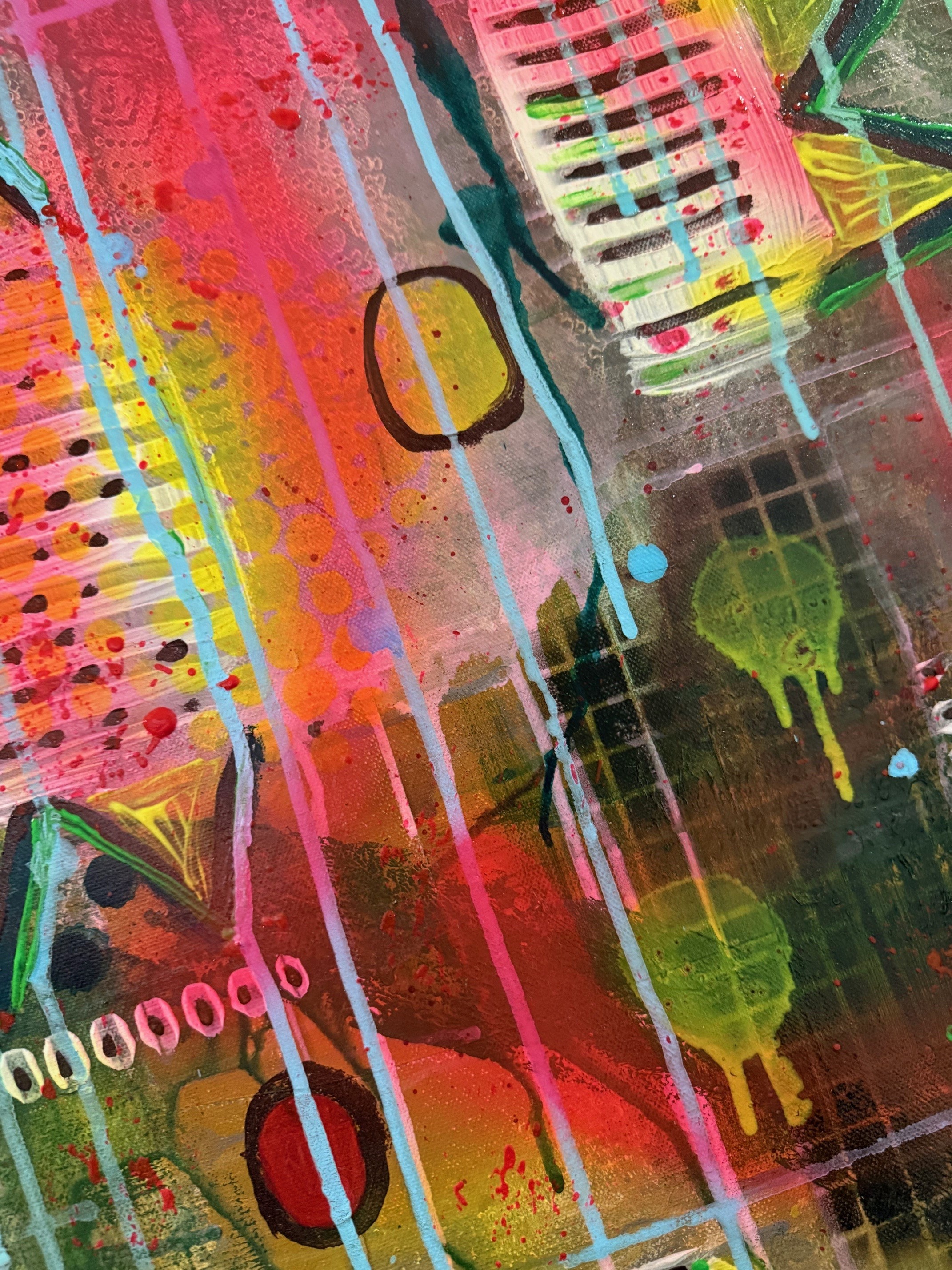 In den abstrakten Werken trifft die raue Seele der Rhön auf leuchtende Neon-Akzente und moderne Strukturen. Es ist eine Liebeserklärung an unsere Heimat - aber laut, bunt und voller Energie, berichtet die Künstlerin.